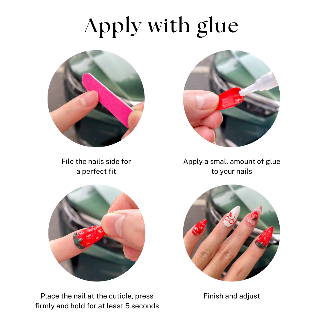 • When you're all in for extended elegance. Apply with our specialized gel nail glue and seal with a UV lamp.